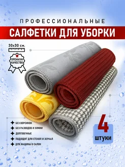 Салфетки для уборки, тряпка для стекол и зеркал 4шт