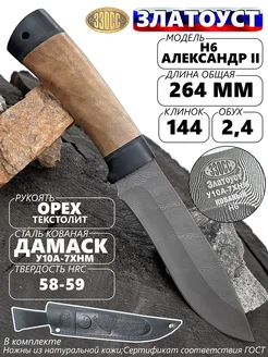 Нож Дамаск клинок 14.4см обух 2.4мм АлександрII Н6 Златоуст