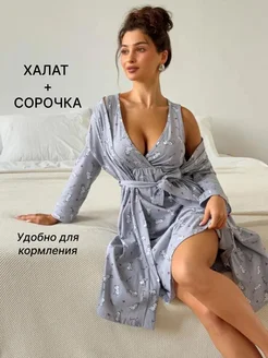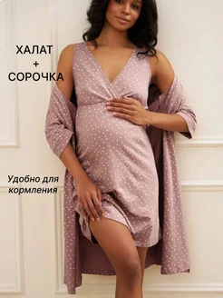 Халат и сорочка для беременных и кормящих в роддом Айрис