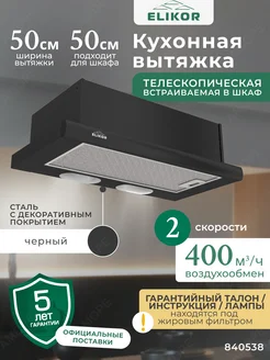Кухонная вытяжка 50 см, телескопическая встраиваемая