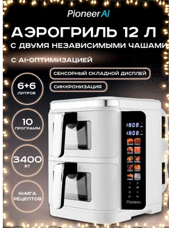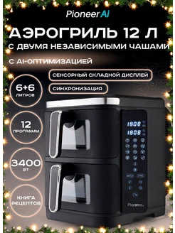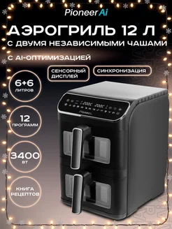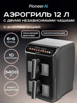 Аэрогриль электрический для дома 12 л, 2 чаши, 12 программ