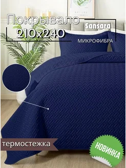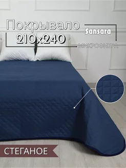 Покрывало на кровать 210x240 двустороннее микрофибра синее