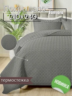 Покрывало на кровать 210x240 двустороннее микрофибра серое