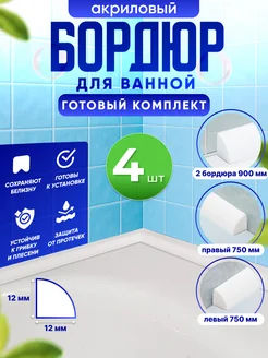 Акриловый бордюр для ванны глянцевый, комплект 4 шт, белый