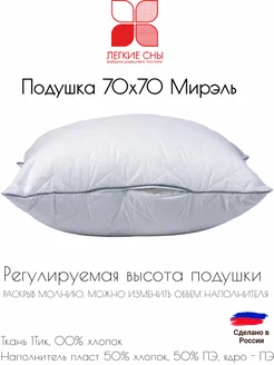 Подушка 70х70 хлопок + искусственный лебяжий пух Мирэль