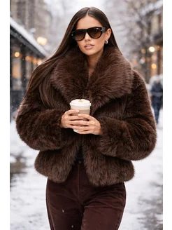 Шуба из искусственного меха под чернобурку утепленная