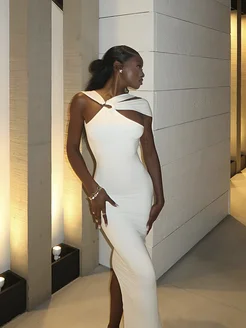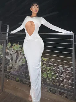 Платье полупрозрачное приталенное вечернее с открытой спиной