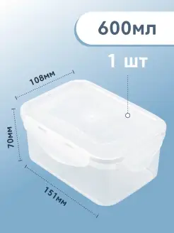 Контейнер для еды и хранения герметичный с крышкой, 600 мл