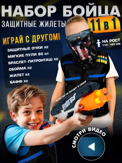Бронежилет детский игрушечный с бластером для игры в Нерф