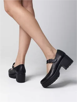Туфли кожаные на толстом каблуке для школы и офиса