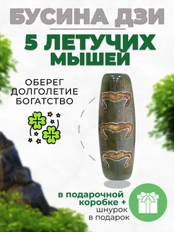 Бусина Дзи 5 летучих мышей в подарочной коробочке