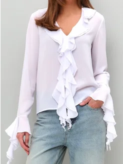 Блузка с воланами нарядная шифоновая полупрозрачная