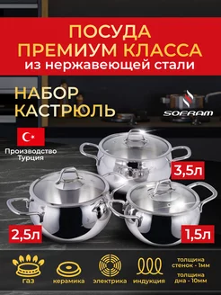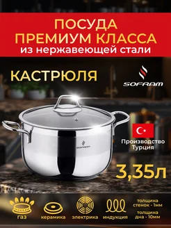 Кастрюля из нержавеющей стали с толстым дном 3, 35л