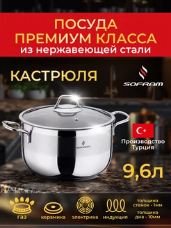 Кастрюля из нержавеющей стали с толстым дном 9, 6 л