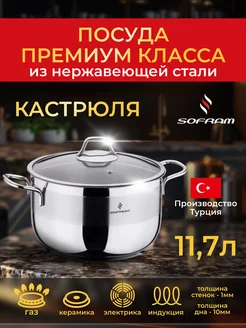 Кастрюля из нержавеющей стали для индукционной плиты 11, 75л