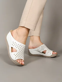 Шлепки кожаные на платформе сабо