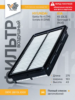 Воздушный фильтр Киа К5, Спортейдж 5, Hyundai Santa Fe 4