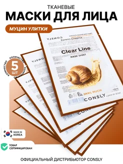 Корейские маски для лица увлажняющие с муцином улитки 5 шт