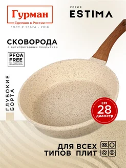 Сковорода универсальная 28 см антипригарная, бежевая, Estima