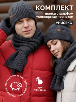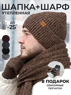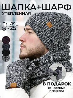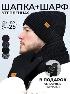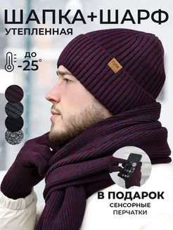 Шапка шарф перчатки комплект зимний осенний с утеплителем