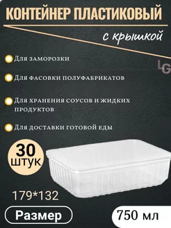 Контейнеры одноразовые с крышкой 750 мл, 30 шт