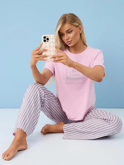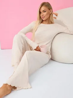 Пижама со штанами и лонгсливом из ажурного хлопка