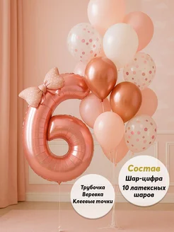 Набор шаров с цифрой 6 для дня рождения, фотозоны, праздника