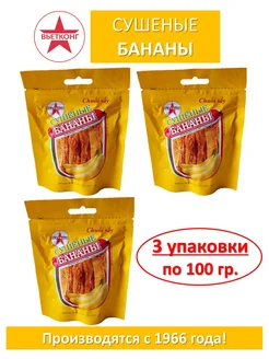 Бананы натуральные сушеные, 3 упаковки, 300 гр
