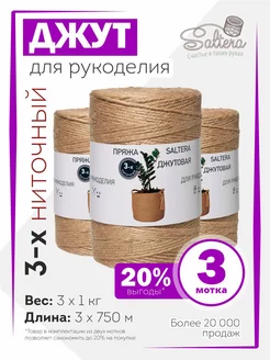 Шпагат джутовый, бечевка для вязания 3-х ниточная (1кг)-3шт