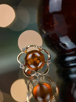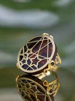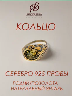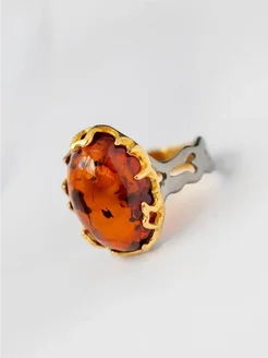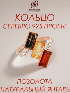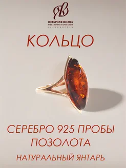 Кольцо серебро 925 с натуральным янтарем позолота ювелирное