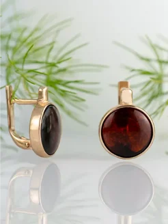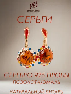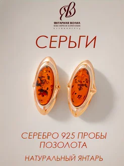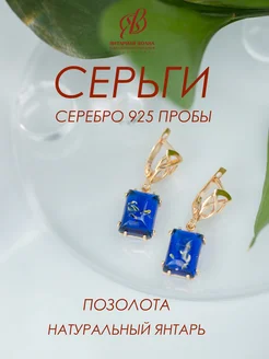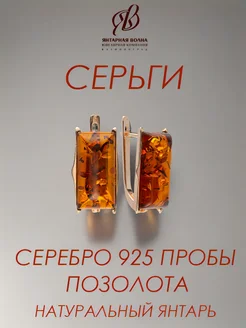 Серьги серебро 925 с натуральным янтарем позолота длинные