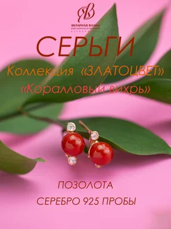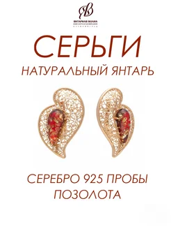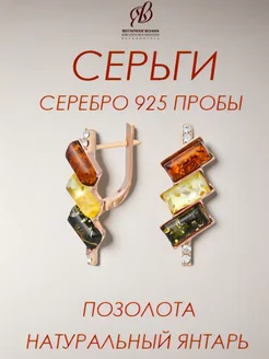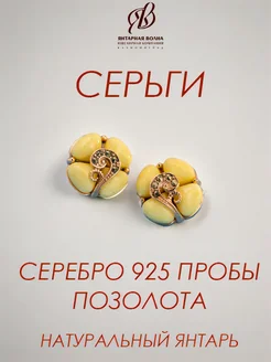 Серьги серебро 925 с натуральным янтарем позолота ювелирные