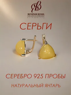 Серьги серебро 925 с натуральным янтарем ювелирное