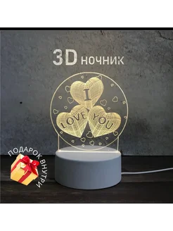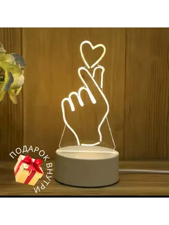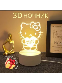 Ночник-светильник детский 3D хэллоу Китти с сердцем