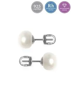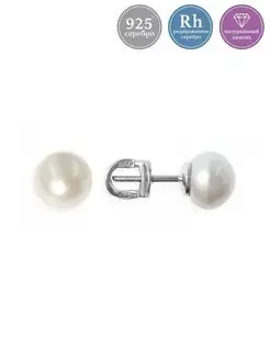 Серебряные серьги пусеты с натуральным жемчугом винтовые