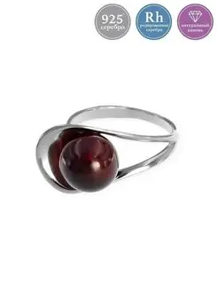 Серебряное кольцо с камнем янтарь Вишня натуральный