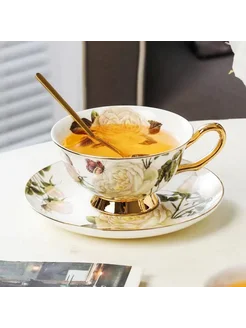 Чайная пара фарфор с ложкой