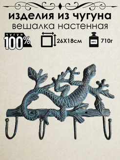 Вешалка настенная из чугуна Ящерица 4 крючка
