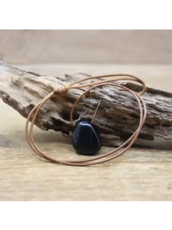 Кулон обсидиан на шнурке - OBSIDIAN