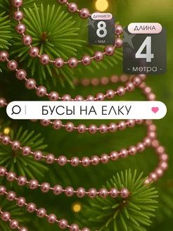 Бусы на ёлку розовые 4м