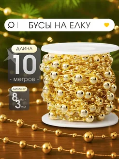 Бусы на ёлку золотистые 10 м