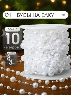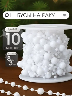 Бусы на ёлку жемчужные 10 м