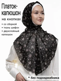 Готовый хиджаб шифоновый платок капюшон на кнопках