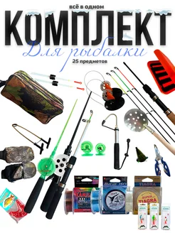 Зимние удочки и аксессуары для рыбалки набор 25 предметов