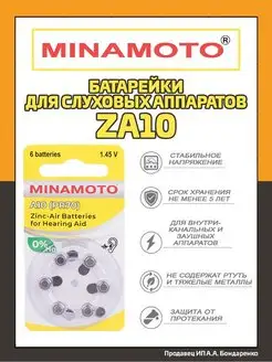 Батарейки для слуховых аппаратов ZA10 - 6 шт