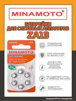 Батарейки для слуховых аппаратов ZA13 - 6 шт