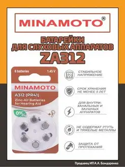 Батарейки для слуховых аппаратов ZA312 - 6 шт