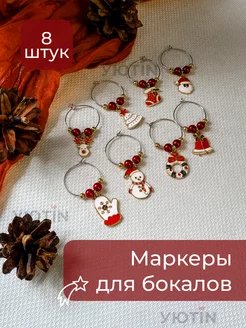 Новогодние маркеры для бокалов 8 штук