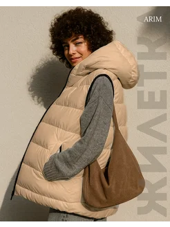 Жилетка утепленная болоньевая оверсайз безрукавка