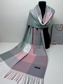 Шарф палантин кашемировый теплый в клетку